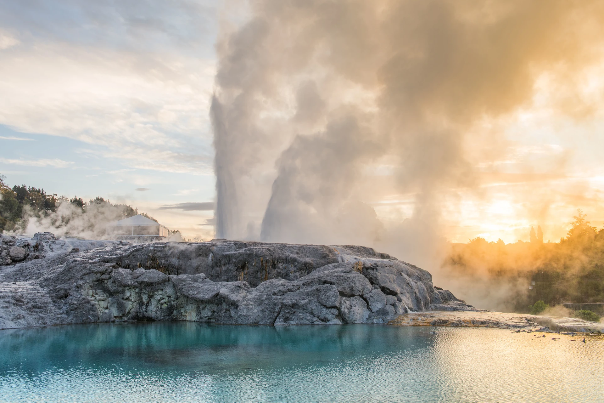 This morning travel to Glenbrook Vintage Railway for a nostalgic 15 kilometre trip back in time on a beautifully restored vintage steam train including a delightful morning tea. Depart Glenbrook and travel through magnificent countryside of rolling hills and green pastures famous for dairying. Continue to Rotorua renowned for its geothermal activity and Māori culture.